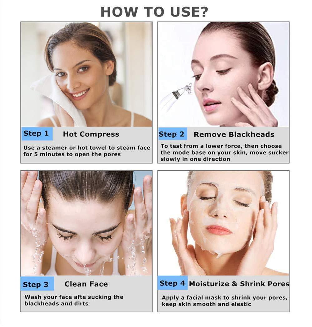 • 💖COMPLETE BEAUTY SET ☛ It is perfect facial care kit for both women and men.The electric vacuum extractor come with the free pimple pins together, can clease your face throughly without any burden. Attention: keep the suction head moving, don't stay in one point. Warranty:you can have your money back or free replacement within 2 months after purchase, please don't hesitate to E-mail us for any doubts.