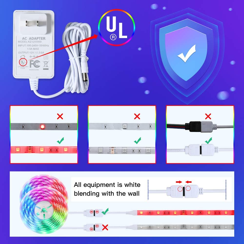 LED Strip Lights Super Bright 450 LEDs AUT Bluetooth Pair 50FT Light for APP Sync Music TV