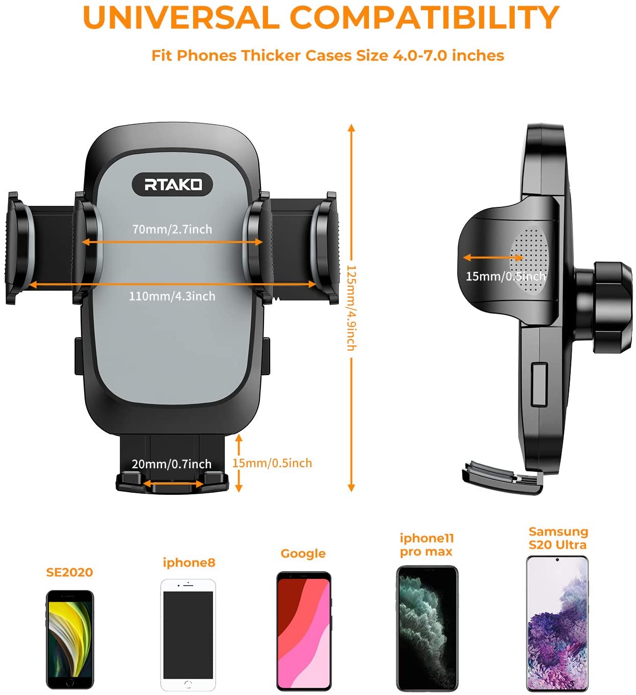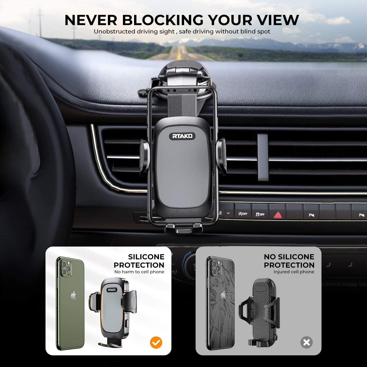 RTAKO Car Phone Holder Mount 360 Degree Rotation Cell Phone Holder for Car Dashboard/Windshield/Air Vent/Desk