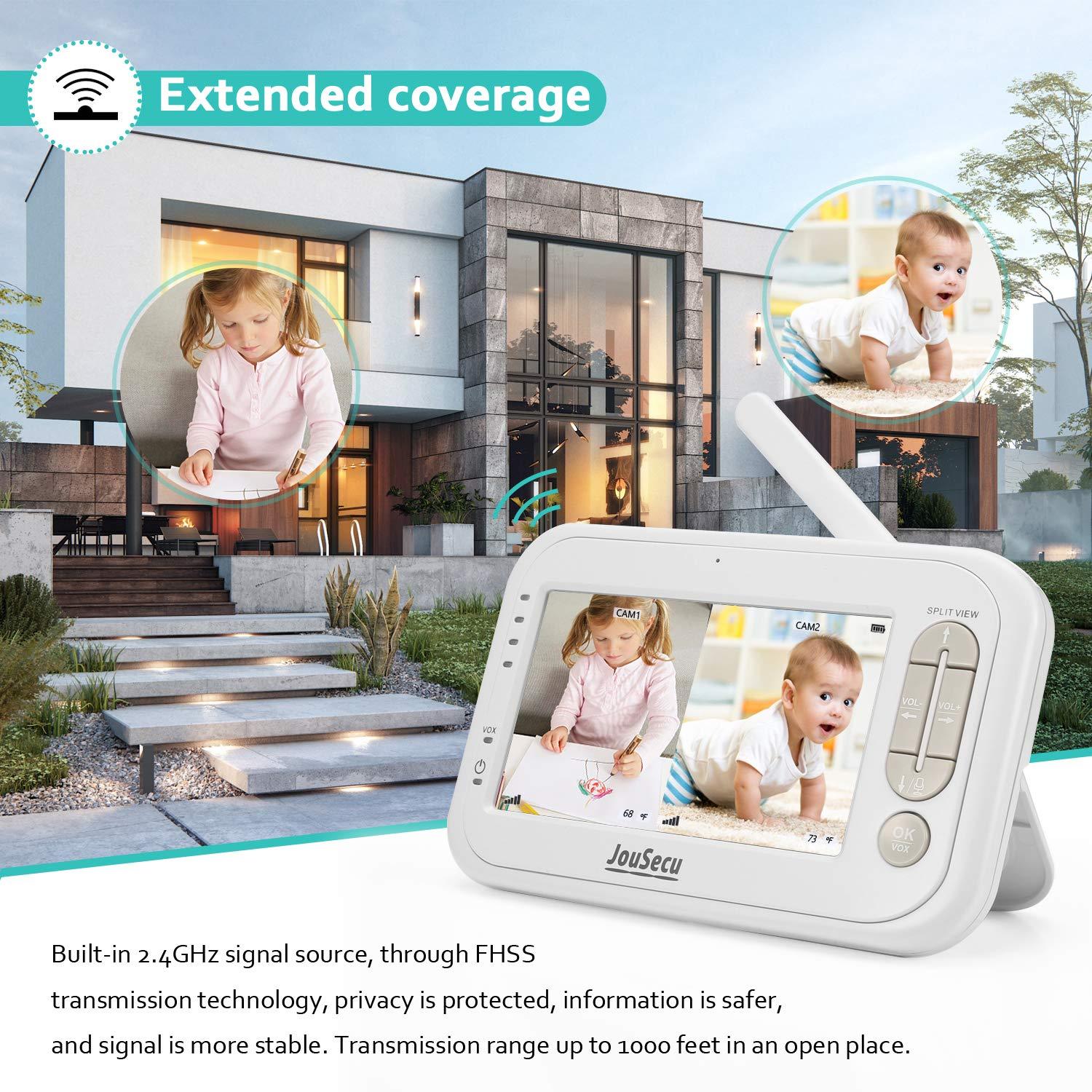 Video Baby Monitor with 2 Cameras 4.3 Inches LCD Split Screen 1440mAh Rechargeable Battery 2-Way Audio Baby Crying Detection Night Vision Temperature Detection